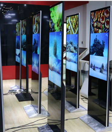 As the panel cost down and videos are high definition, big size screens are very popular in market. From 65 inch to 108 inch ,big size screens are more attractive ,brings better user experience. LG ,Samsung Grade A panel ,LED back light display the content bright,lively.And our machines becomes part of decoration in cloth shops,shoes shops and restaurants.